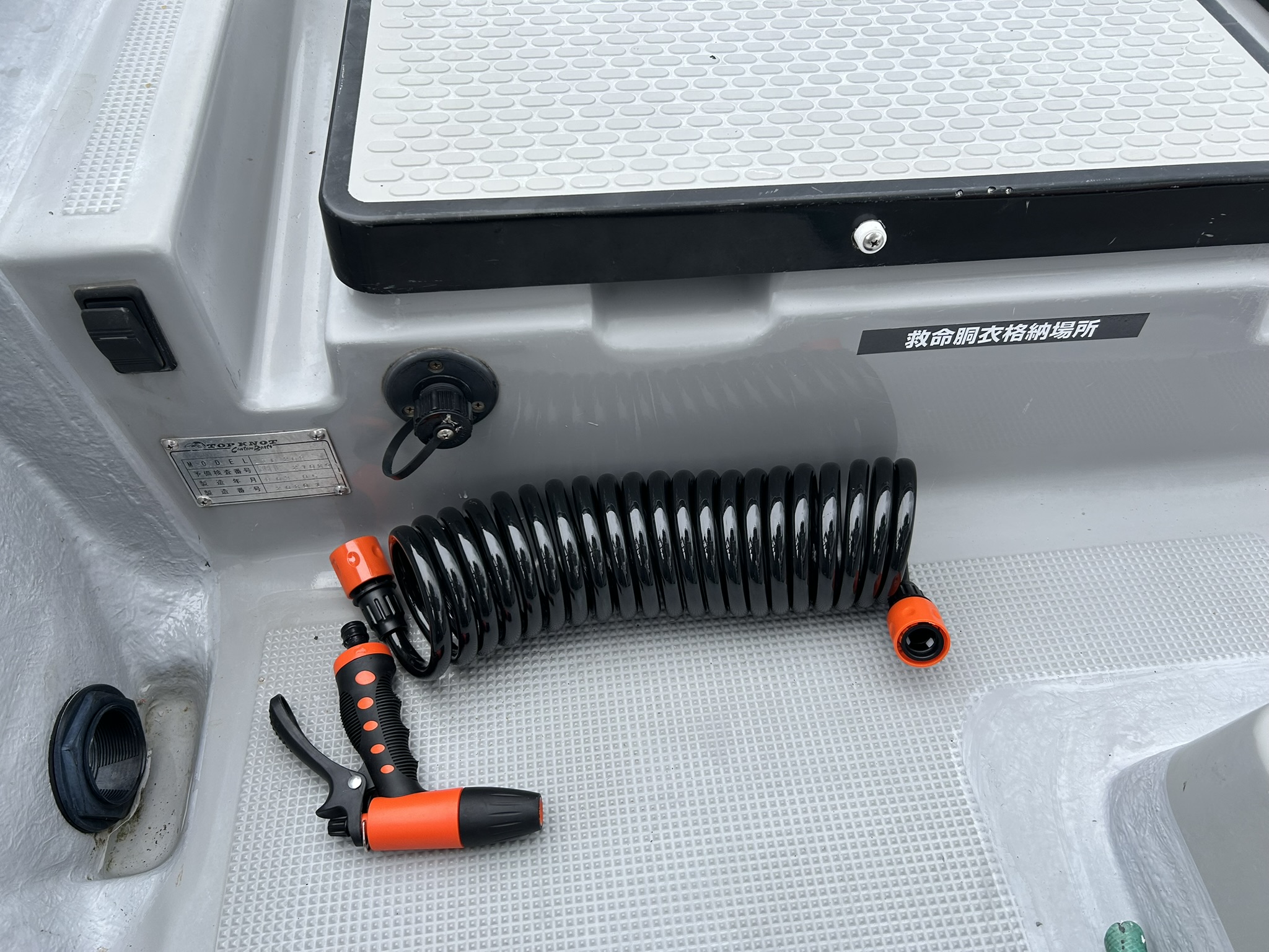 装備品はデッキウォッシュ(新品ホース)、ロッドホルダー、油圧ステ他、EVAステアリング、T-TOP 、