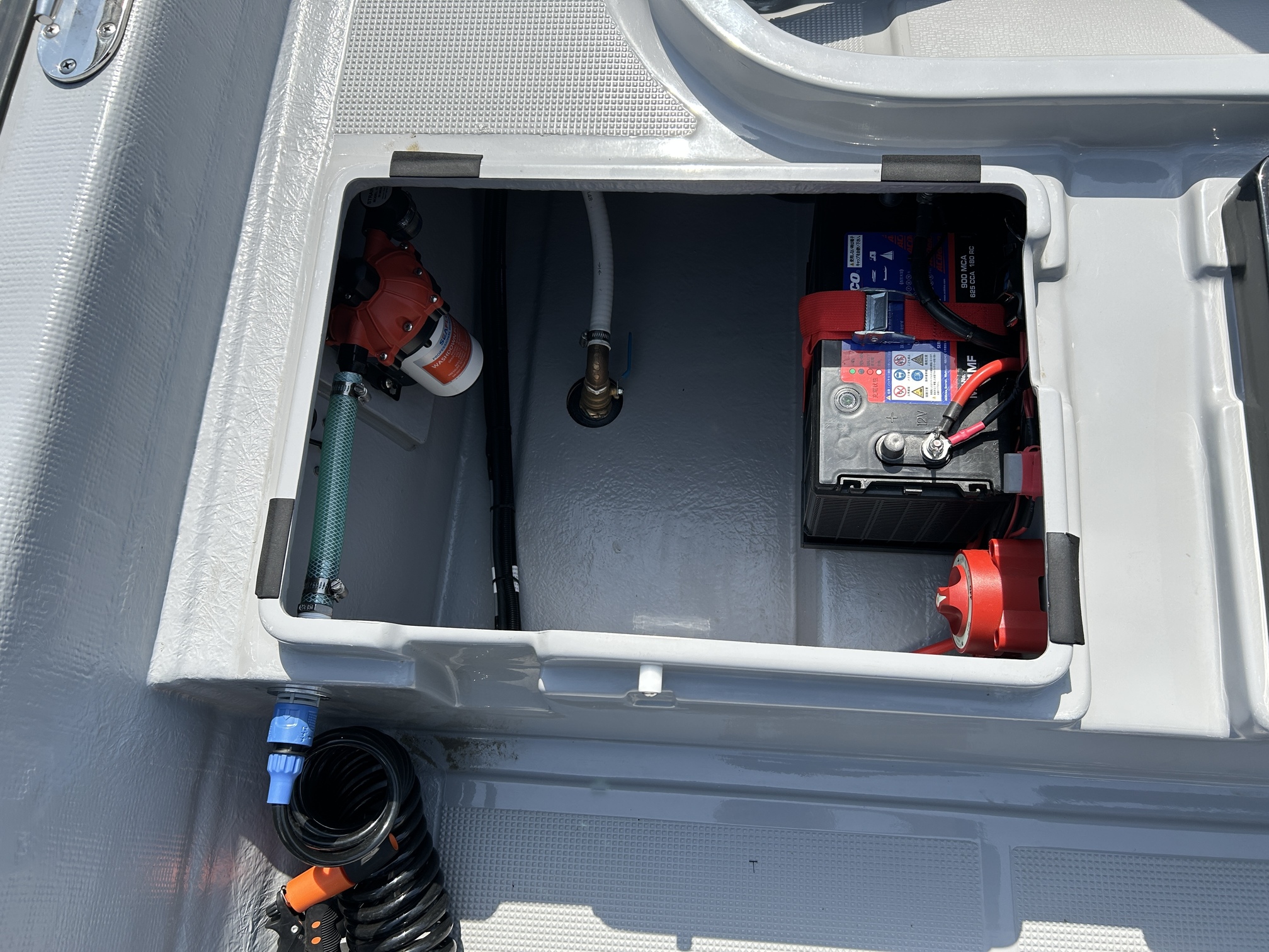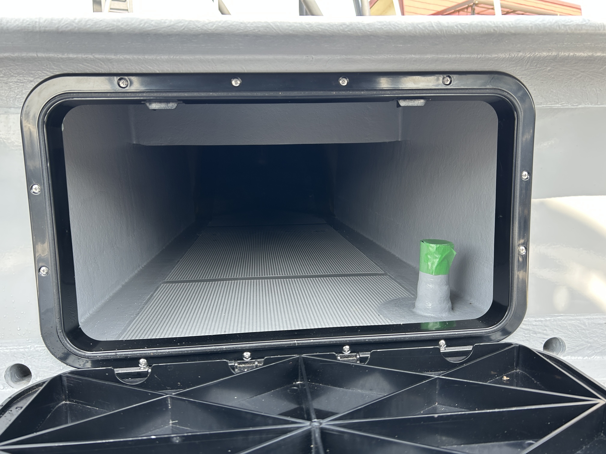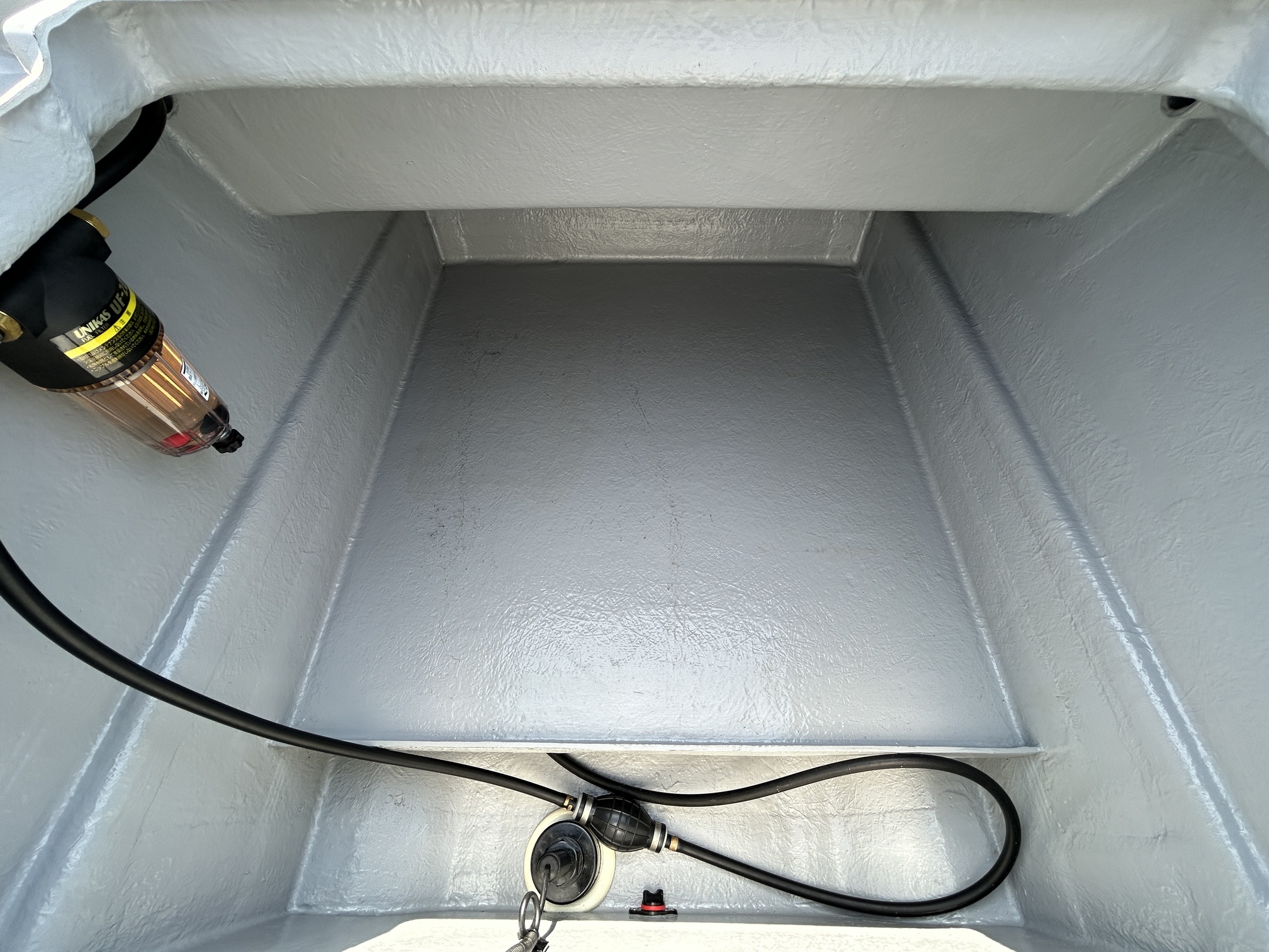 油圧パワーステアリングキットが装備されているため非常に軽い操作感。ジャックプレートも装備されているため海の状況に応じたセッティングが可能です。フロントキャステイングデッキはハッチ1個・立面1個付きになってますがキャステイングには十分なスペースを保ってます。生簀も装備されており、プライベートフィッシングはもちろん、フィッシングチャーター艇にも最適です。